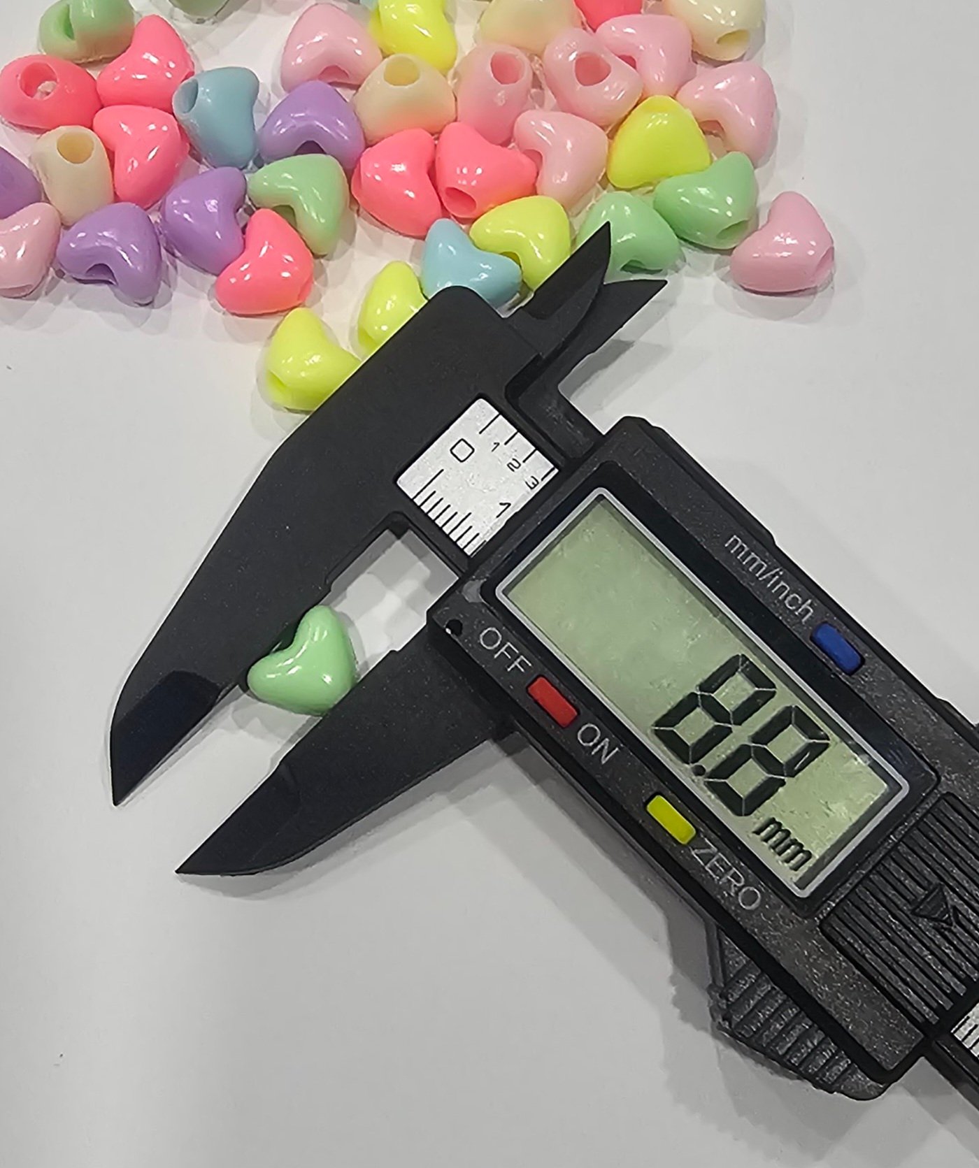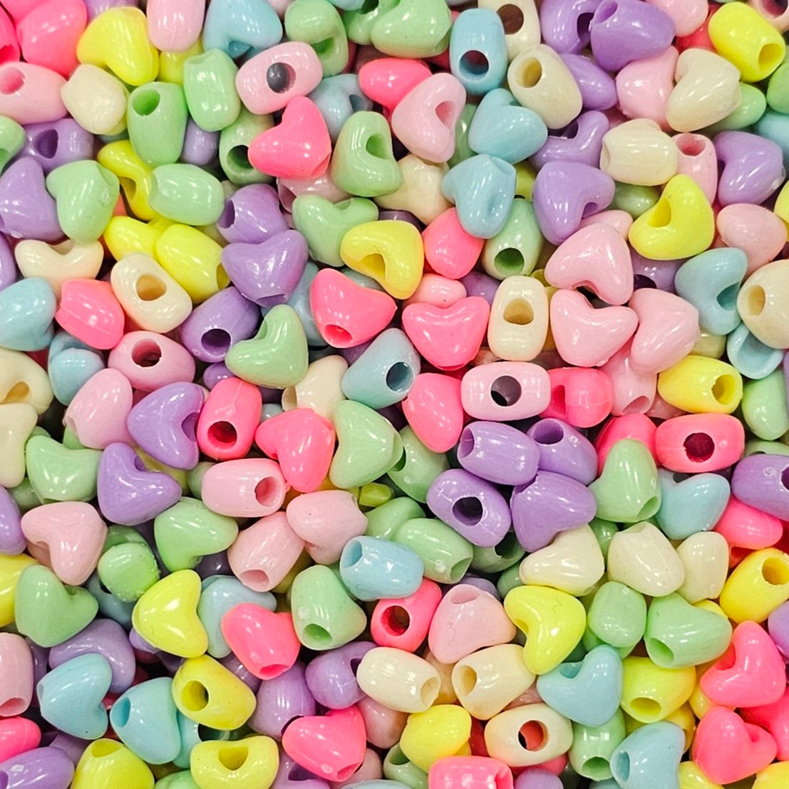Acrílico con forma de corazón en bulto multicolor de 9mm aprox, en 3 presentaciones: