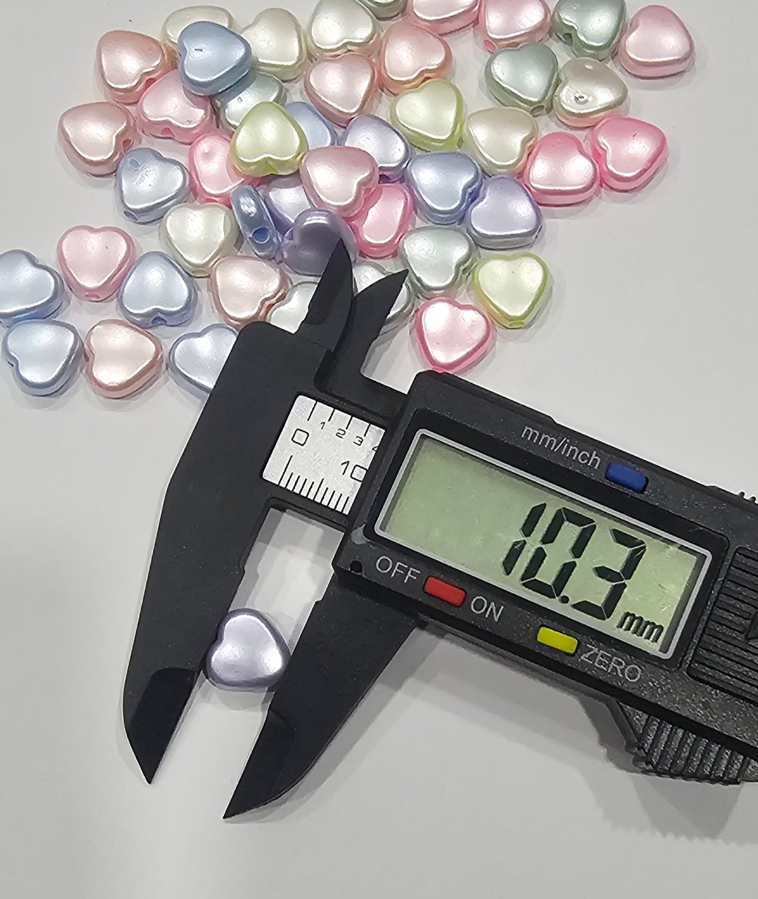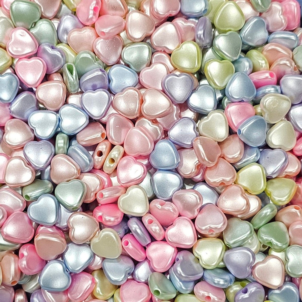 Acrílico con forma de corazón plano multicolor en tonos pastel con tornasol de 1cm aprox en 3 presentaciones: