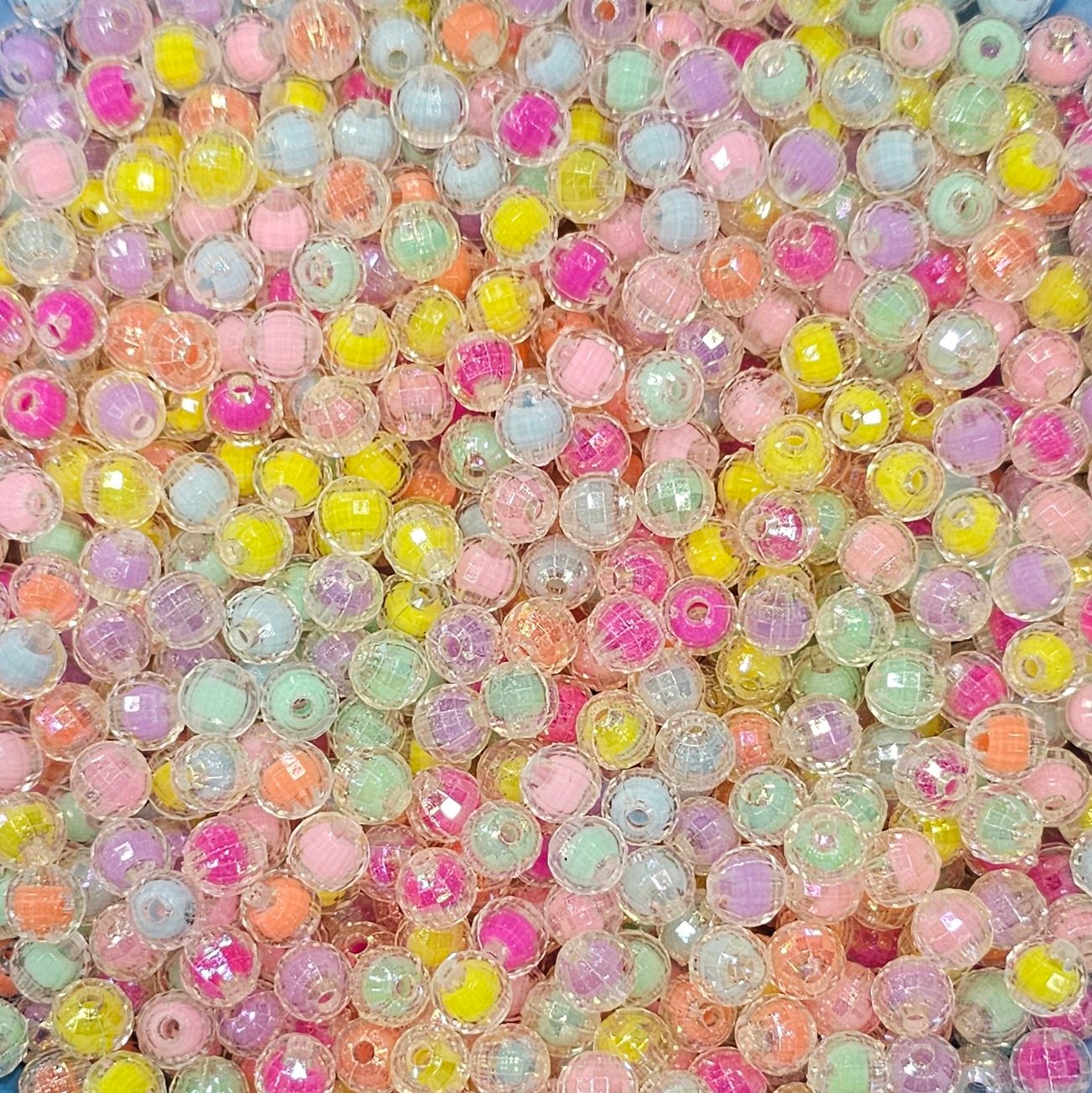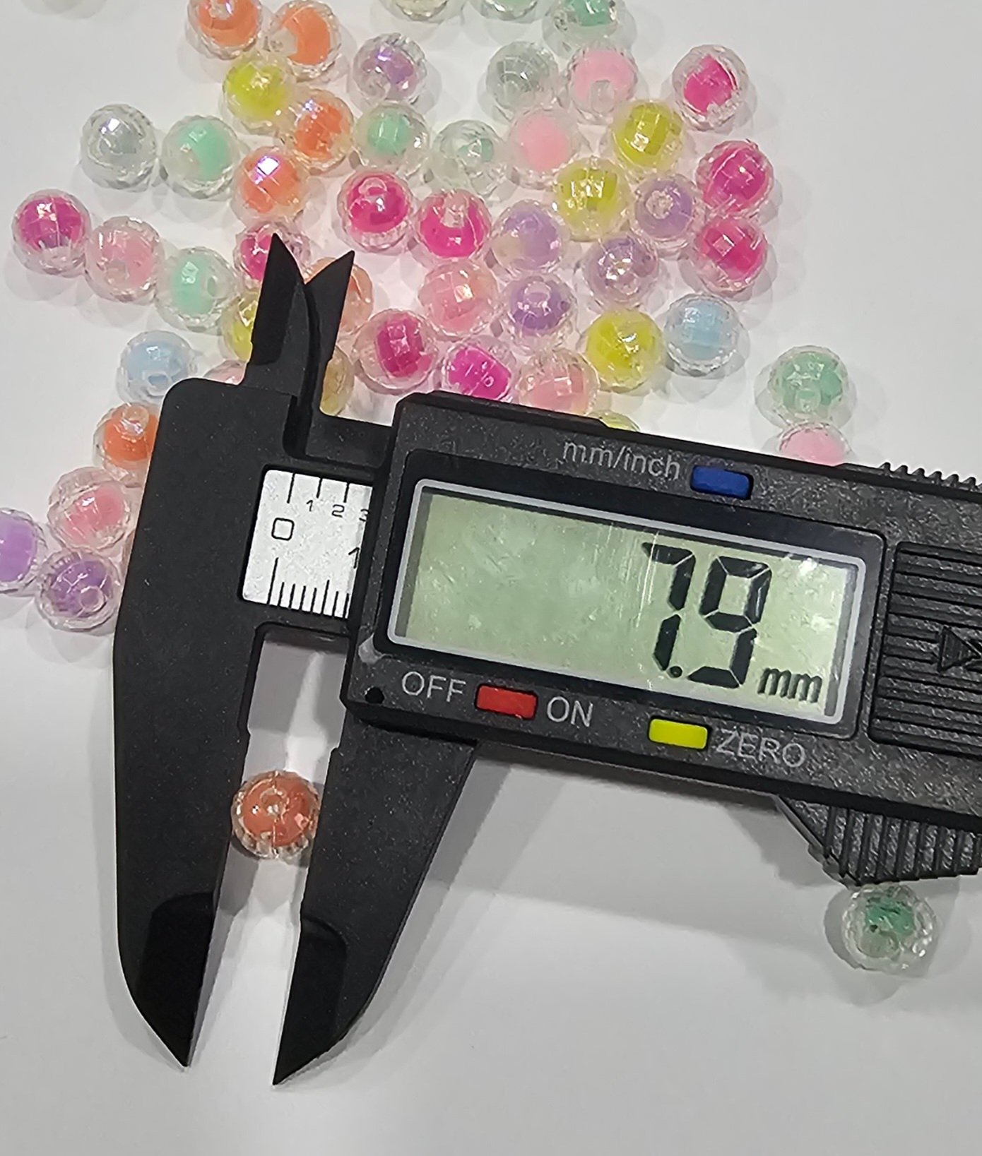 Acrílico con forma de esfera facetada de 8mm con el color encapsulado y tornasol en 3 presentaciones: