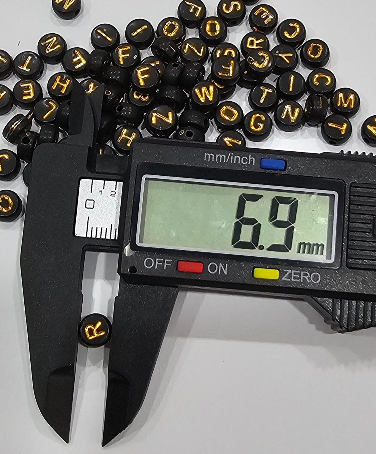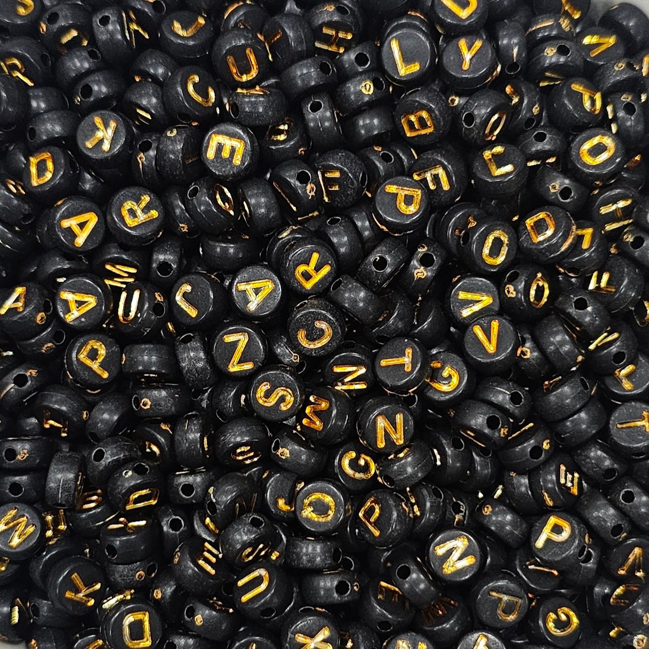 Acrílico con forma de luneta negra con letra dorada surtida de 7x4mm en 3 presentaciones: