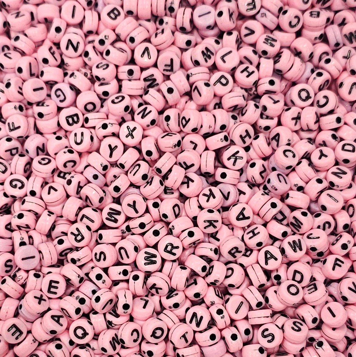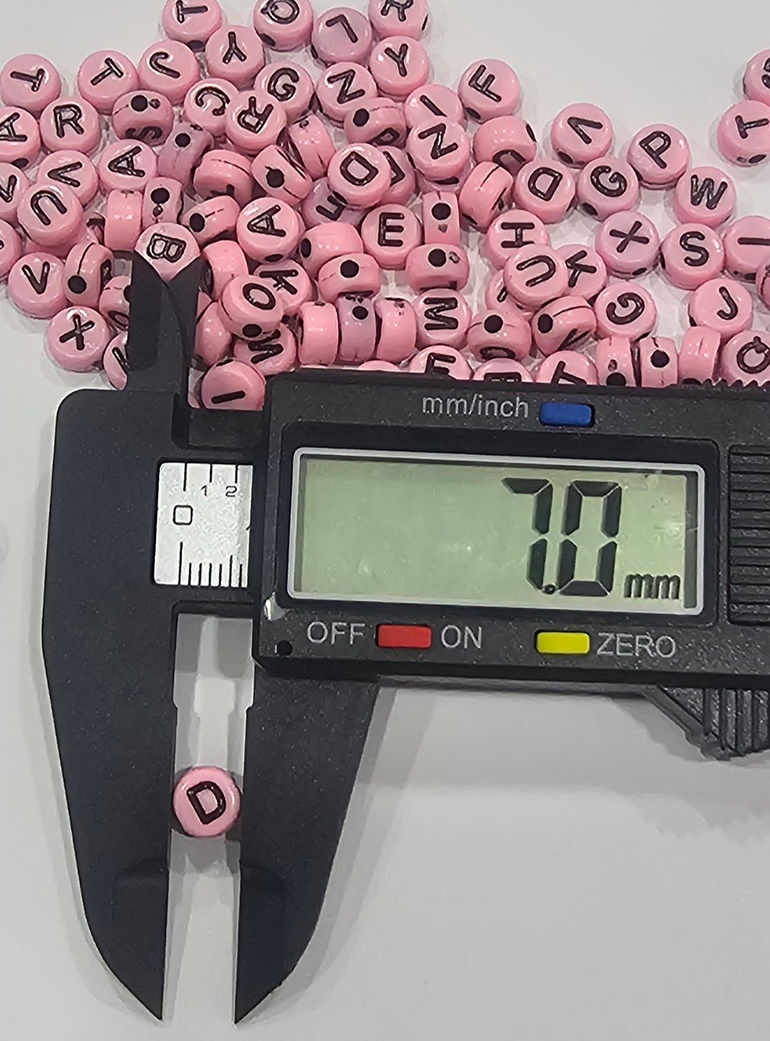 Acrílico con forma de luneta color rosa con letra negra surtida de 7x4mm en 3 presentaciones: